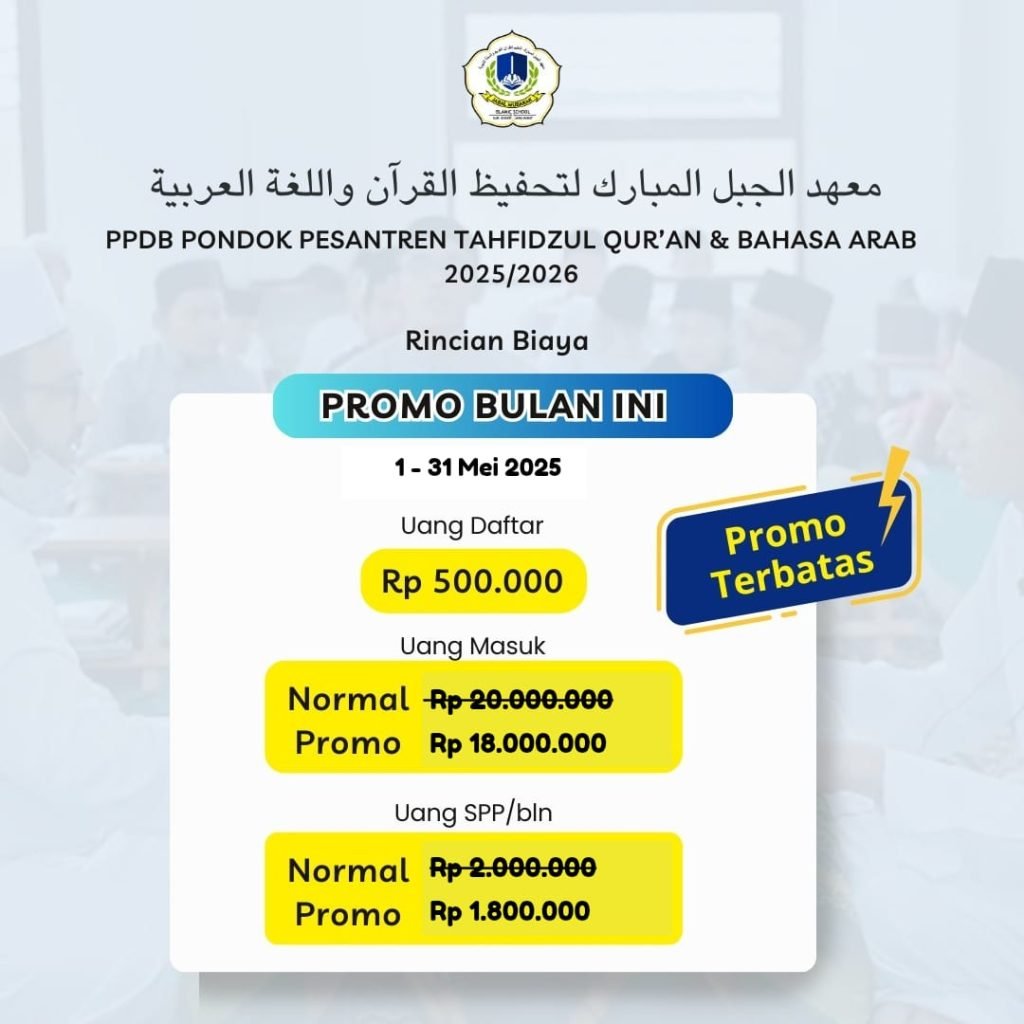 Santriwan & Santriwati Baru/Pindahan Tingkat SMP & SMA Program Tahfidz Al Qur’an 30 Juz Bersanad dan Bahasa Arab Plus Tahun 2025/2026